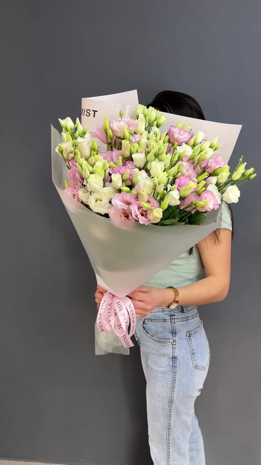 Букет выполнен из 15 веток эустомы приятного белого и нежно-розового оттенка. Её нежные лепестки будто сделаны из шёлка. Это букет отлично подходит для выражения любви, благодарности, для того, чтобы скрасить чей-то день своей красотой или просто украсить комнату.Памятка по уходу за букетом:1. Налейте в вазу холодную воду до точки перевязки букета2. Подрежьте стебли острым ножом или секатором под углом 45″3. Ежедневно подрезайте стебли и меняйте воду4. Ваза с букетом не должна находиться вблизи отопительных приборов, на сквозняке и под прямыми лучами солнцаС букетом мы отправляем бесплатную открытку (по Вашему желанию), средство для продления жизни срезанных цветов (1 шт) и памятку по уходу за букетом.Букет можно дополнить набором из гелиевых шаров или сладостями